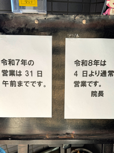 2025年は12月31日(水)午前中までの営業です。