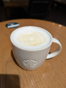 初めて頼む飲み物、店員さんが上にはちみつをかけてくれました。